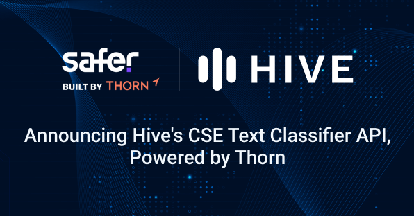 Hive’s partnership with Thorn is expanding to include a new CSE Text Classifier API, which can help trust and safety teams proactively combat text-based child sexual exploitation at scale.